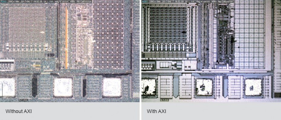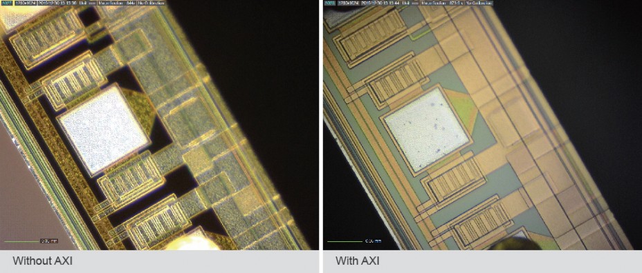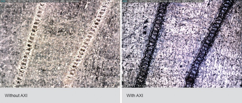 Casting light through the lens, the built-in and software controllable AXI is designed to provide axial or brightfield illumination, making it ideal for observing reflective surface under high magnification.